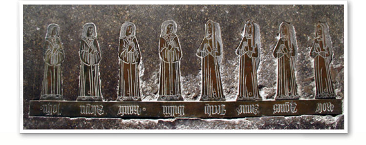 Monumental brass to John Symonds, 1508, wife Agnes, 1512, and children at Cley-next-the-Sea, Norfolk before and after conservation.